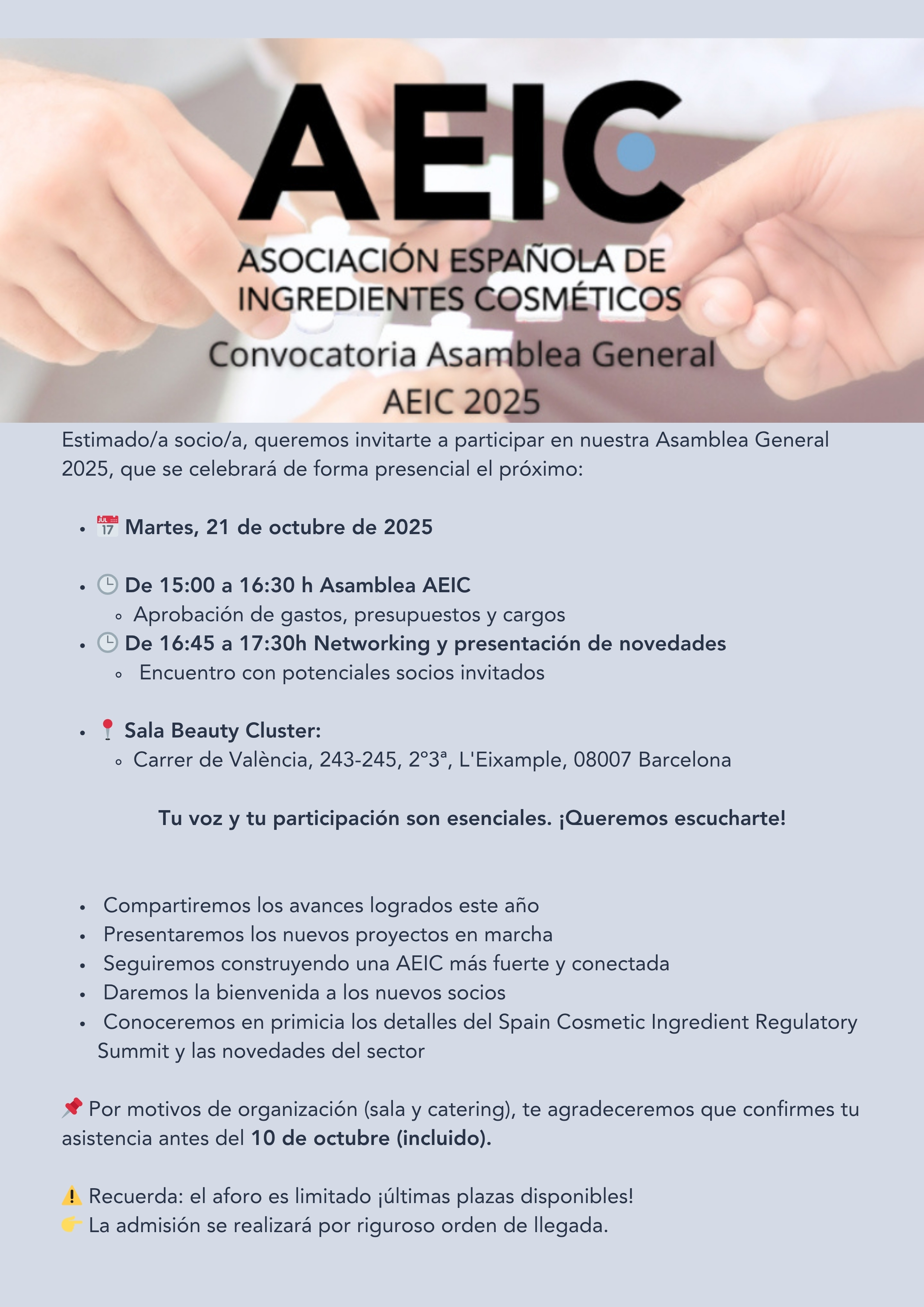 Será una cita clave para compartir los avances de este año, presentar nuevos proyectos y seguir construyendo una AEIC más fuerte y conectada.