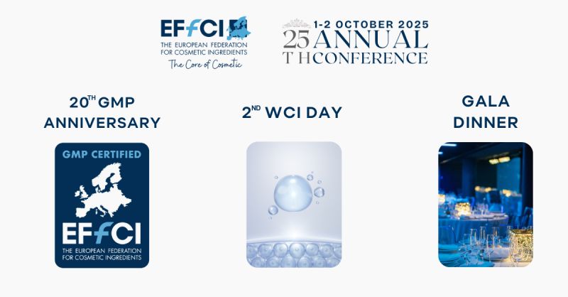 Por último, las jornadas coincidieron con el 20º aniversario de las normas EFfCI GMP, que durante dos décadas han representado los más altos estándares de calidad y seguridad en los procesos de fabricación de las materias primas e ingredientes cosméticos, sirviendo a nivel internacional, como símbolo de confianza de los consumidores en todo el sector.